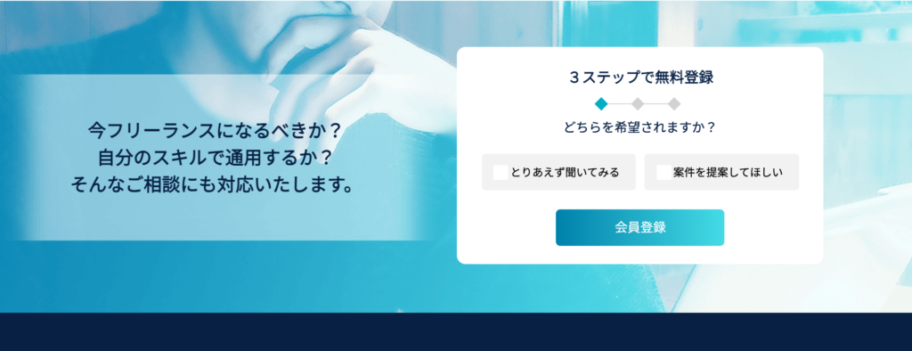 まだフリーランスになってない人も登録はもちろん可能です。登録後の初回面談では、「フリーランスになるべき?」「自分のスキルで通用する?」などの相談にも対応してくれます。
