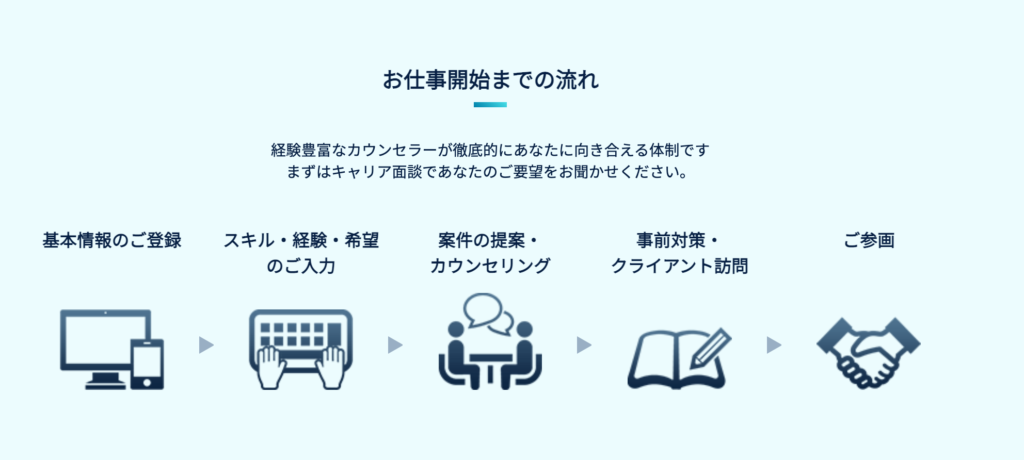 基本的な流れは他のフリーランスエージェントとそこまで変わりません。