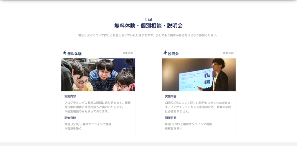 >> GEEK JOB「プレミアム転職コース」の体験会に参加する | 公式サイトへ